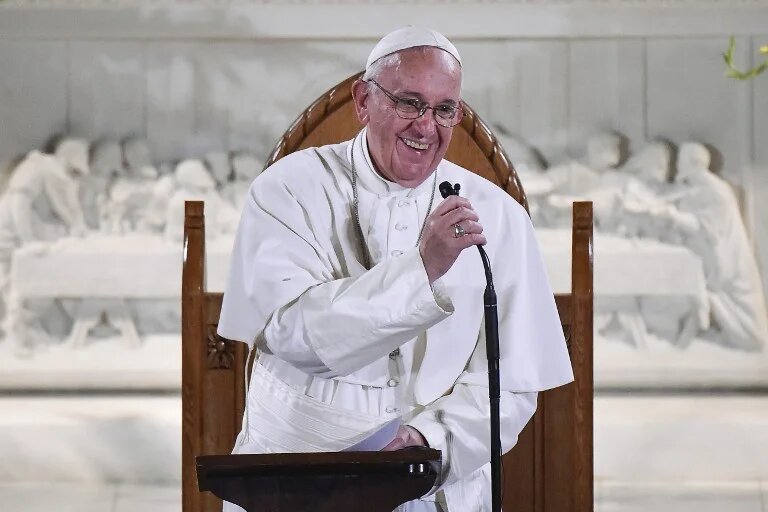 At the end of his speech, the pope asked the crowd to send prayers his way. He also asked for good wishes from those “who do not believe or cannot pray”.