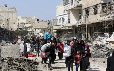 A mass exodus from Eastern Ghouta’s southern towns - largely dominated by rebel faction Failaq a-Rahman - began last Thursday, Syria Direct reported, as throngs of people started to stream from a corridor near the town of Hamouriya to government-held territory.