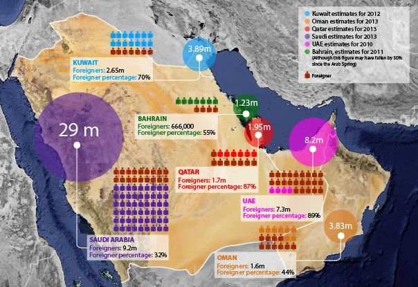 The GCC countries tend to have young and relatively fast-growing populations, although the circumstances differ from member to member. All states rely on large expatriate communities that have swelled in recent decades as the GCC economies have grown, an influx that is causing internal tensions in some GCC states.