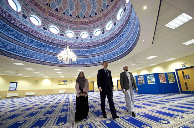 David Cameron at Leeds mosque in January 2016: Warsi questions government policy toward Muslim events (AFP)