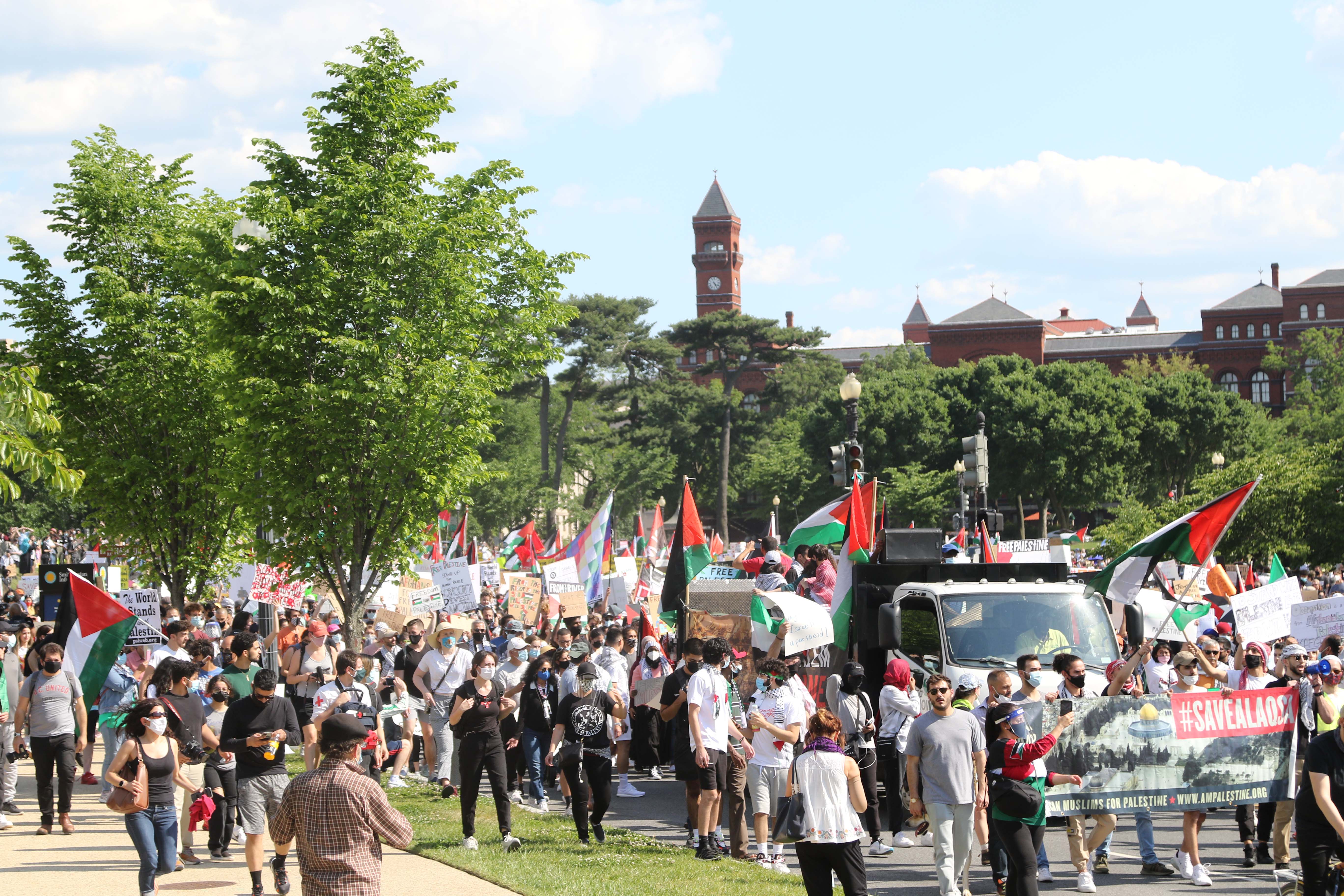 More than a thousand pro-Palestinian protesters marched in downtown Washington on Saturday, after US President Joe Biden reaffirmed Israel's right to defend itself in a call with Prime Minister Benjamin Netanyahu.