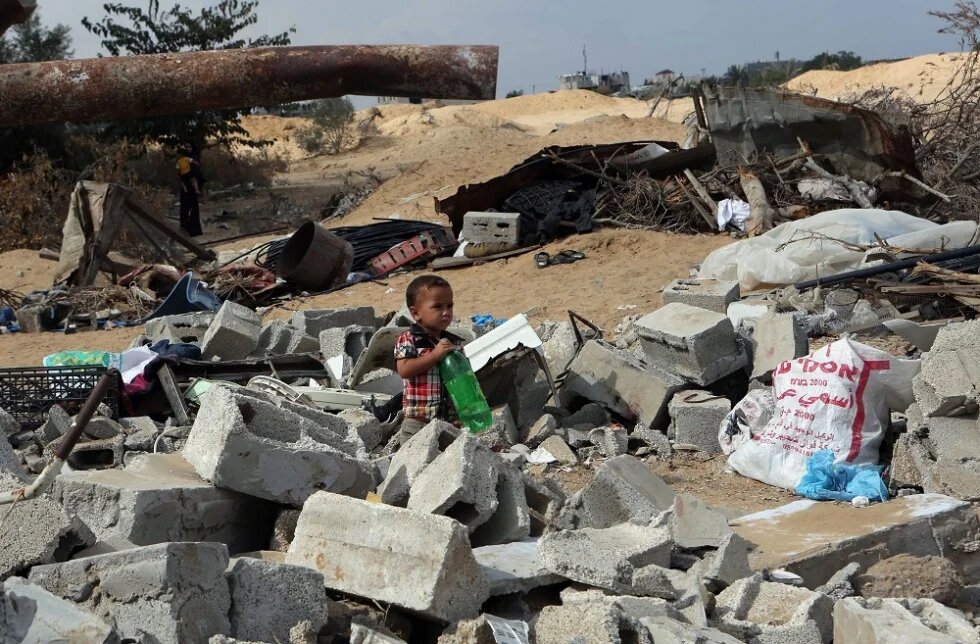 A Palestinian child pictured amidst the rubble in Gaza as Cairo conference tackles reconstruction (AFP)