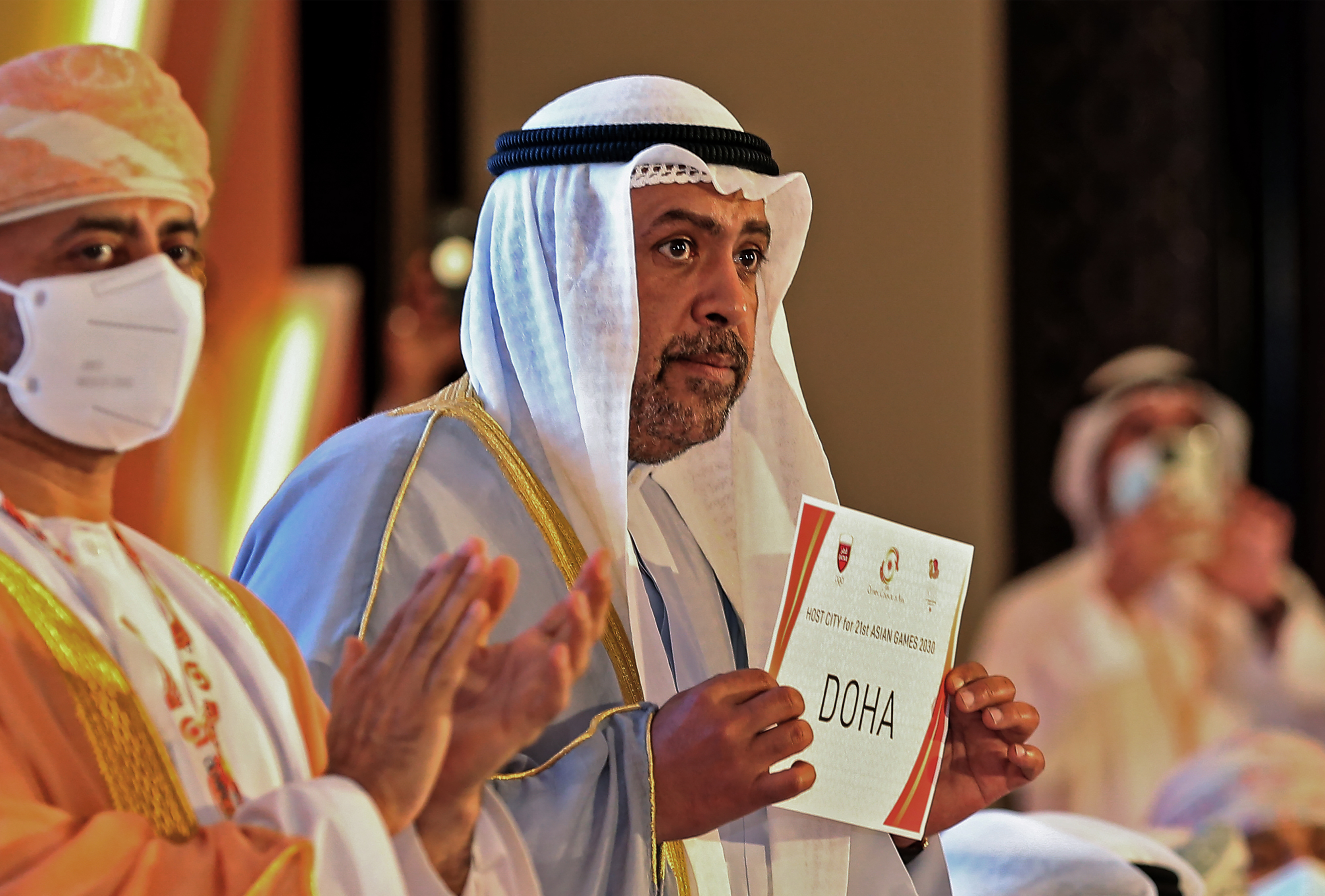 Qatari officials waved flags and sangs chants at the meeting in the Omani capital Muscat, as Doha won the vote among the OCA’s 45 national Olympic committee members.