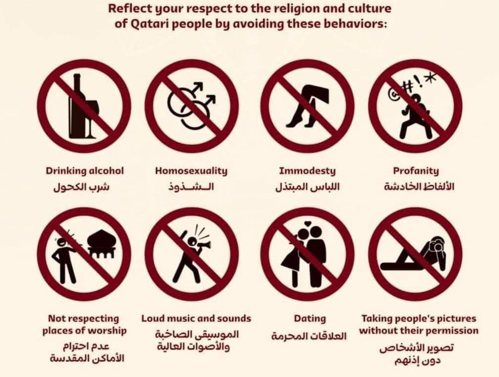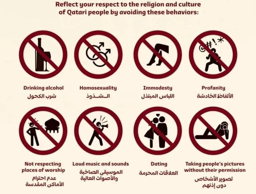 The organisers of Qatar's World Cup have issued a statement declaring that an infographic that has been widely circulating on social media, asking visitors to the tournament to refrain from drinking alcohol, homosexuality and swearing, among other actions, was not issued by them and contains incorrect information.