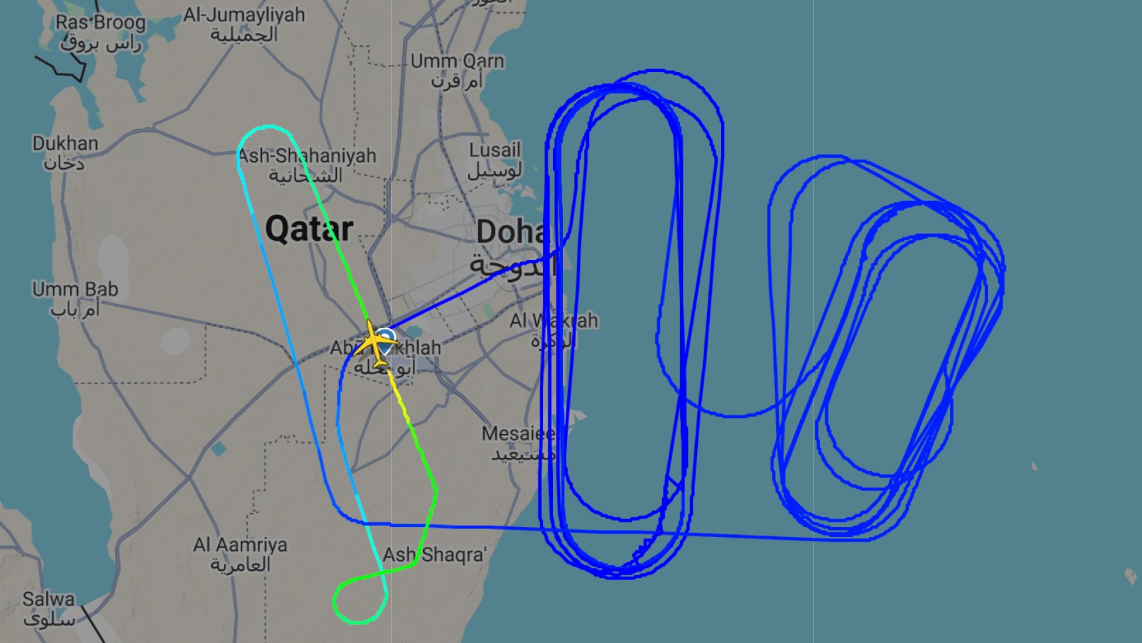 Publicly available flight data shows that the plane was in the air for over five hours on Monday, taking off shortly before 3pm local time before landing a little after 8pm at Al Udeid Air Base, where it has been deployed from RAF Brize Norton since 3 September. Explosions were reportedly first heard in Doha around 3pm.