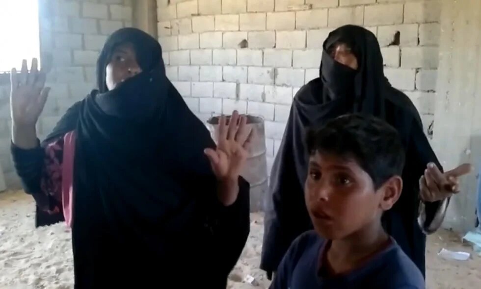 The scale of the attack becomes clears as the camera passes through an array of nomad dwellings and more substantial houses destroyed in a "sweep" for militants by troops and the air force.