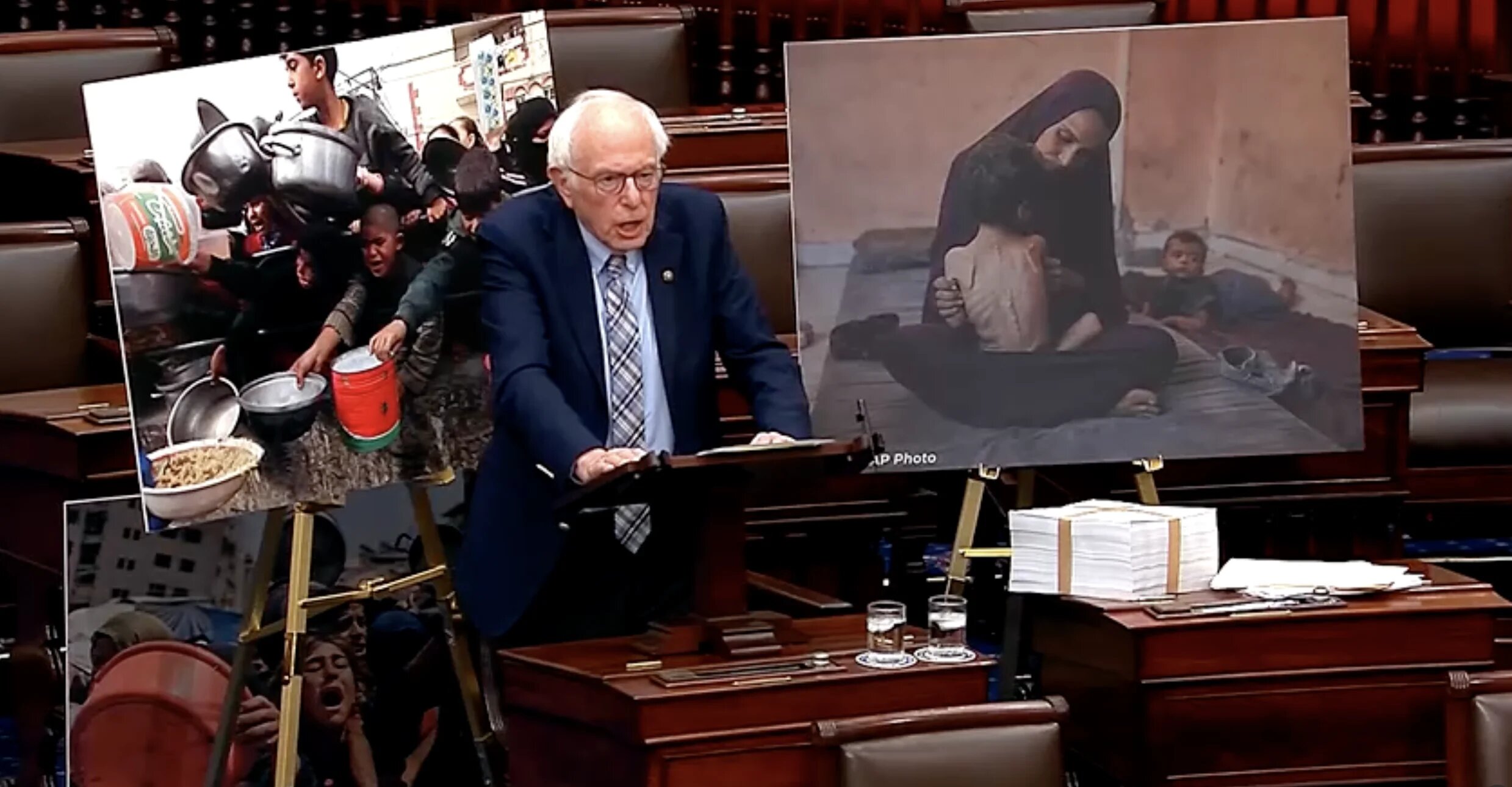 “France and Canada have said that they will recognise a Palestinian state. The United Kingdom has said it will do so as well if Israel does not immediately end this war and surge humanitarian aid," Sanders said on the Senate floor. "And at the UN last month, 149 countries voted for a ceasefire resolution condemning the use of starvation as a weapon of war and demanding an end to Israel's blockade on humanitarian aid.”