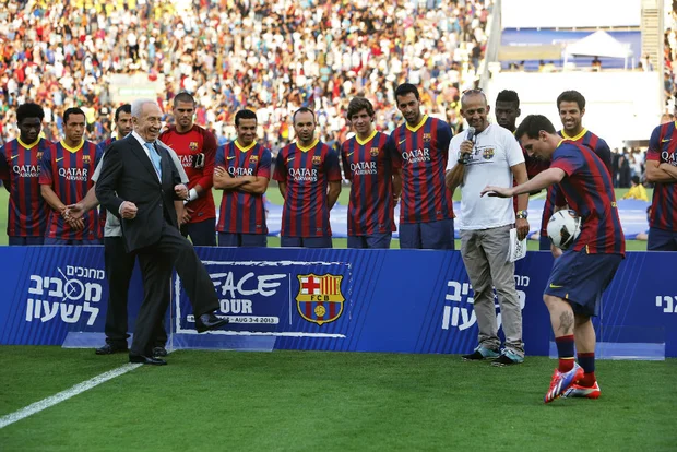 They also met Netanyahu, and Messi was photographed playing 'keepy-uppies' - juggling a football - with then-Israel president Shimon Peres.