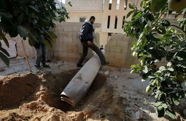 An unexploded missile launched by an Israeli F-16 lay in Khan Younis city in Gaza Strip (Twitter\@qudsn)