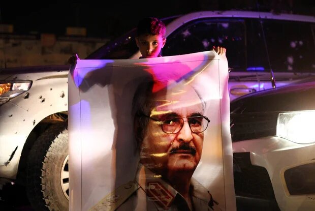 A Libyan boy holds a portrait of General Khalifa Haftar amid celebrations in Benghazi last October (AFP)