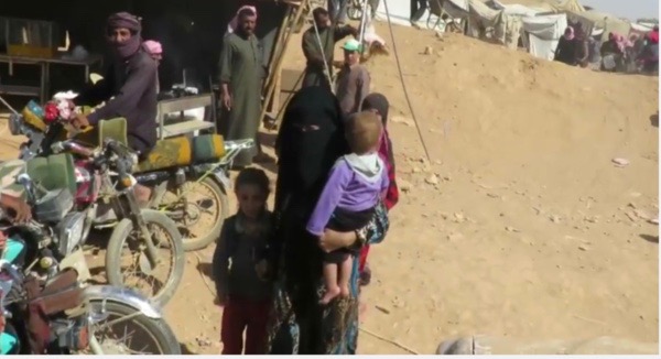 The footage, uploaded to YouTube by a Free Syrian Army affiliate operating at the remote desert crossing-point of Ruqban, purports to show what life is like inside the settlement.