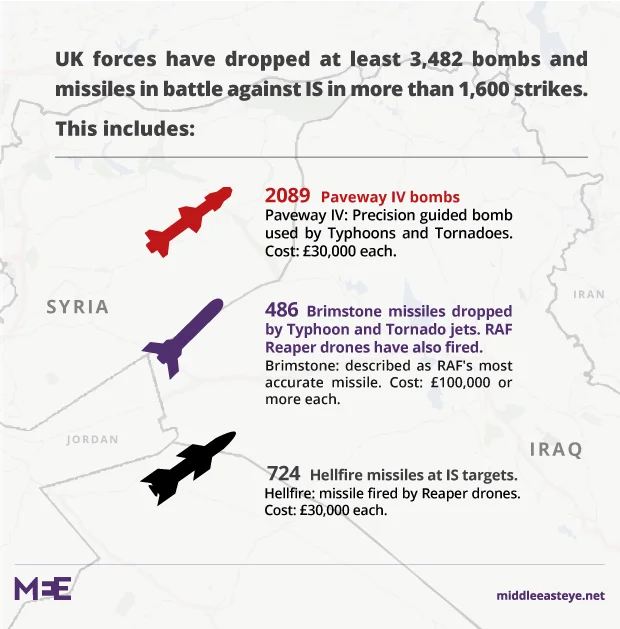 This came after an MEE investigation found that RAF jets and drones had dropped more than 3,400 bombs and missiles on Islamic State militants.