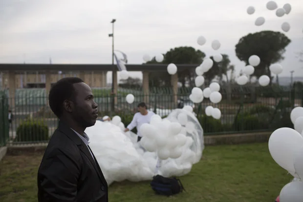 Outside parliament on Monday, a small group of Israeli activists and African asylum seekers released approximately 2,000 balloons into the air, symbolising the 2,000 asylum seekers currently jailed at the Holot detention centre.