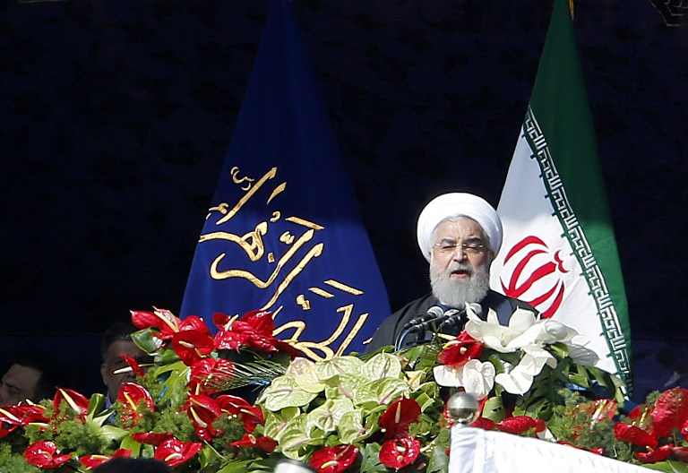 President Hassan Rouhani, addressing flag-waving crowds on central Tehran's Azadi (Freedom) Square, made no specific reference to Israel's air strikes in Syria on Saturday, which it said were aimed at air defence and Iranian targets.