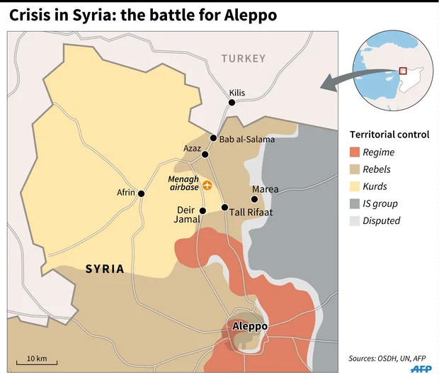 Government advances, however, definitely appear to be continuing in other rebel-held areas, with pro-government forces taking the neighbourhood of Bani Zeid in the northwest outskirts of Aleppo on Thursday.