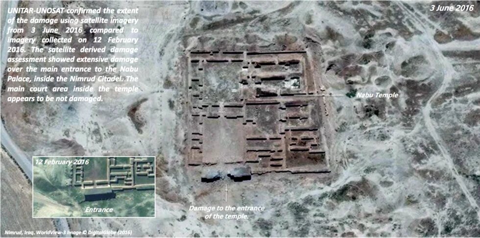 The UN training and research agency UNITAR said it had analysed satellite images collected on 3 June over the ancient Assyrian city of Nimrud in northern Iraq.