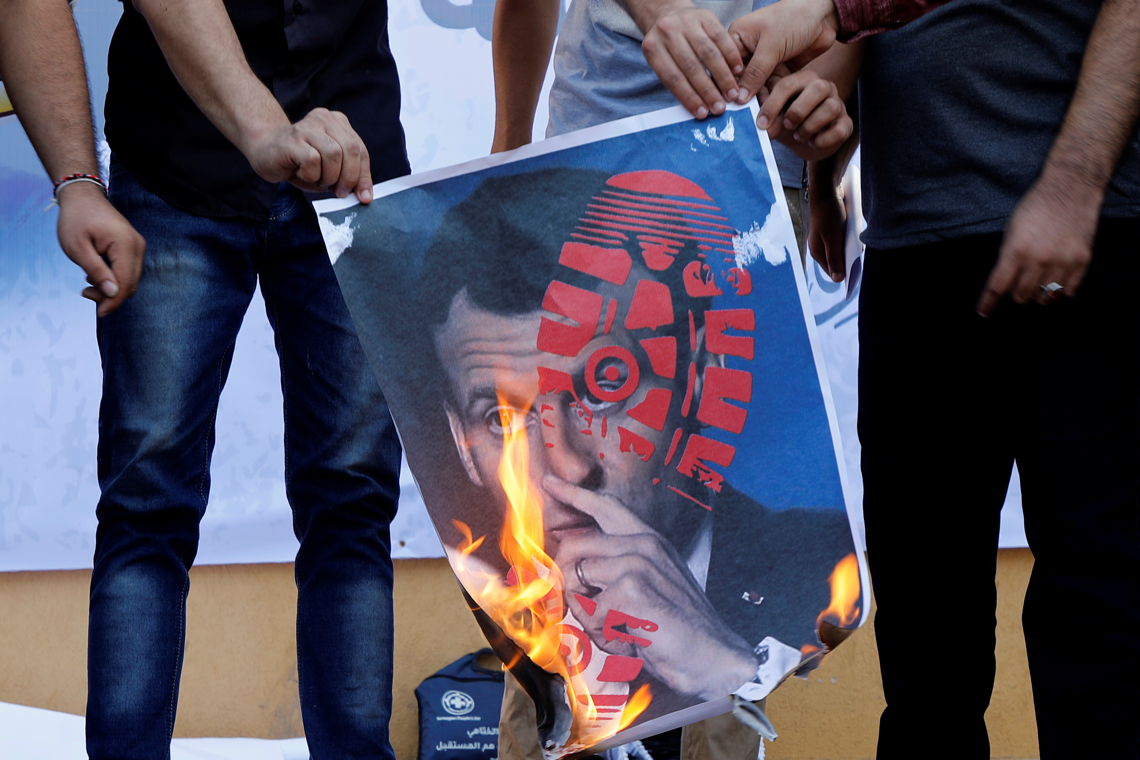 Protests have also erupted in Iraq, Turkey and the besieged Gaza Strip, with demonstrators in Baghdad burning the French flag and stepping on images of Macron.