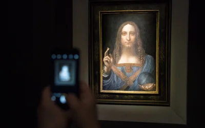 A journalist takes photos of the Salvator Mundi, after it was unveiled at Christie's in New York on 10 October 2017 (AFP/File photo)