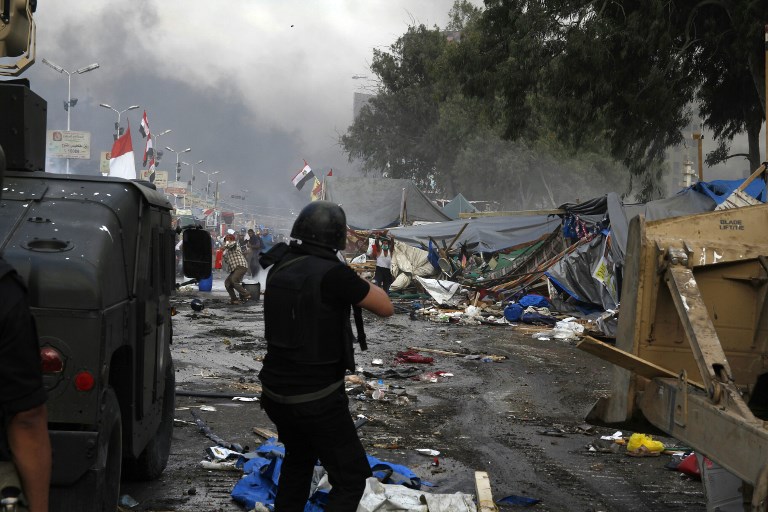 At least 817 protesters were fatally shot on 14 August 2013, in Rabaa al-Adawiya square, according to HRW (AFP)