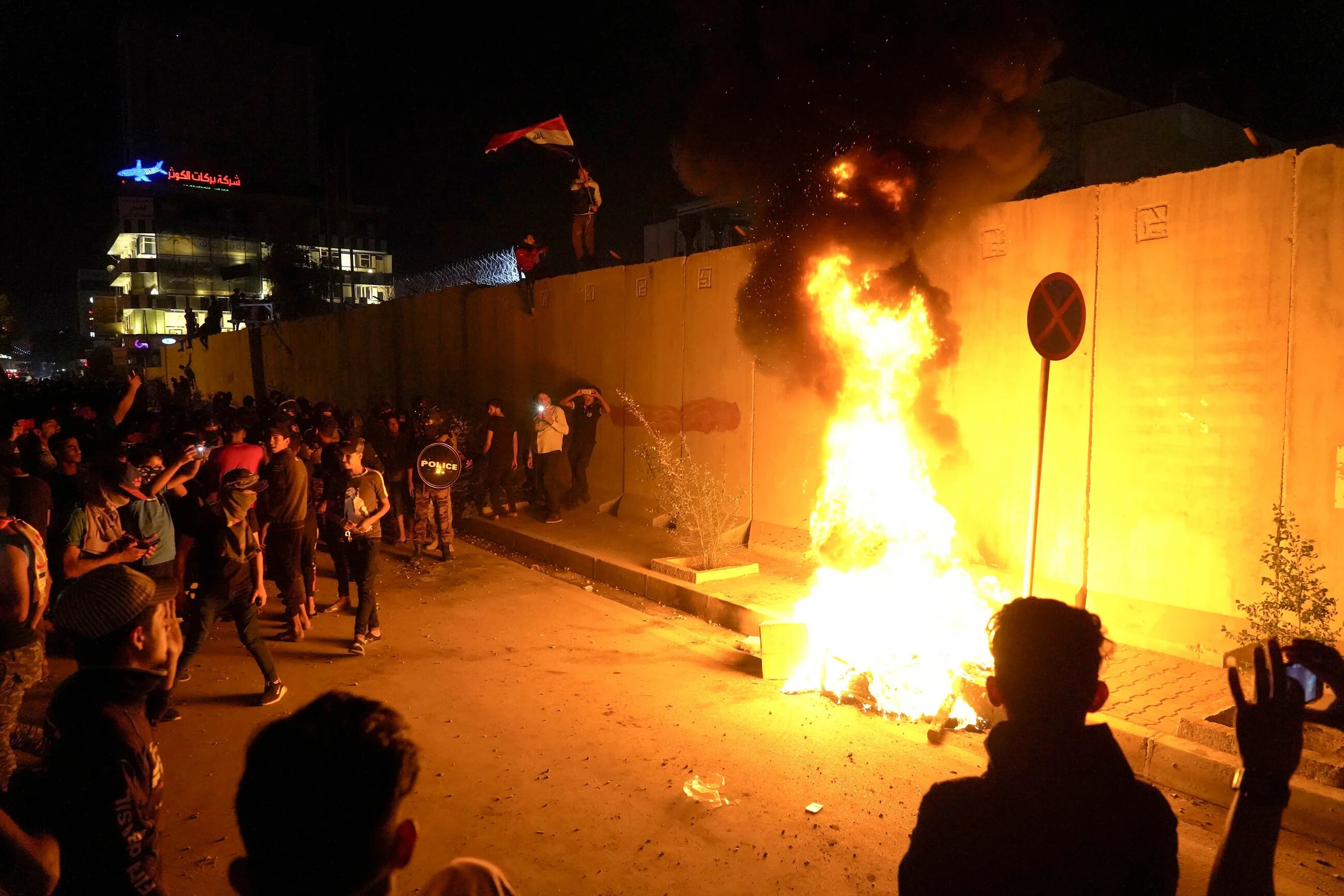 Witnesses said protesters scaled the walls surrounding the building, bringing down an Iranian flag and replacing it with an Iraqi one.