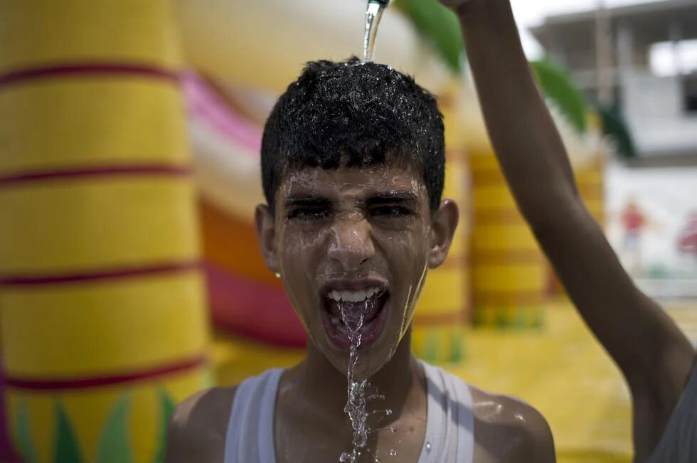 Palestinians in Gaza suffering from the heat have little respite from the humidity and baking temperatures. While some have taken to the beaches to escape the heat, others cannot evade it in light of poor power rationing for a few hours. 18,000 homes were destroyed during last summer’s war on the coastal strip, and not one house has been rebuilt so far. Temporary accommodations are comprised of metal caravans with zinc rooftops- a furnace in the making.