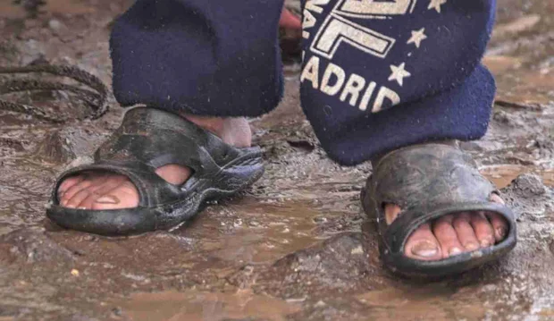 Children wander around barefoot in sandals. Water collects into containers from the ceilings of those tents which are still sanding. And everywhere is the cold.