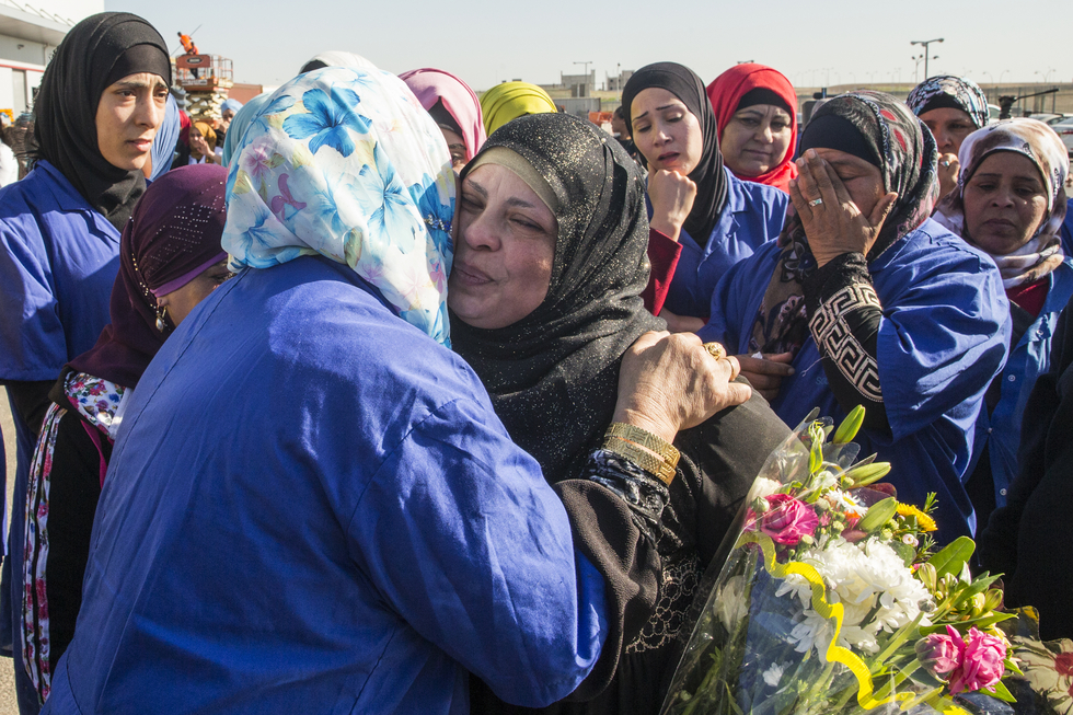 On Monday, they boarded buses to leave the plant in the southern Israeli town of Levahim for the last time, many visibly emotional, as company officials expressed outrage.