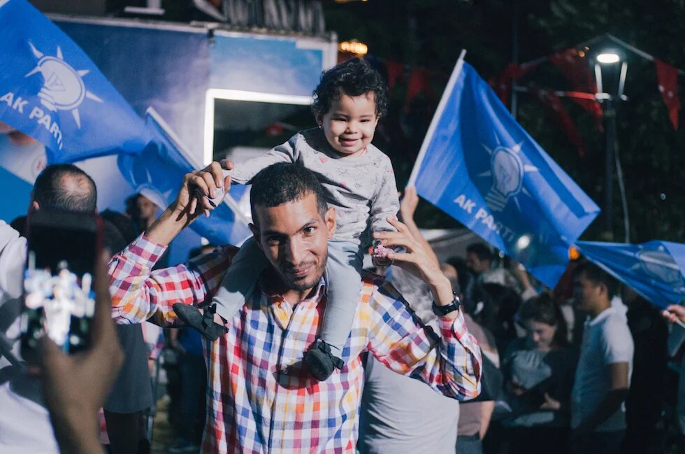 Once communal meals were consumed and the crowd was rejuvenated, the campaign vans blared a medley of songs centred on the same lyric – Erdogan's name. The audience responded enthusiastically, dancing in circles, hoisting children onto shoulders and waving flags emblazoned with the lightbulb symbol of Erdogan's Justice and Development Party (AKP).