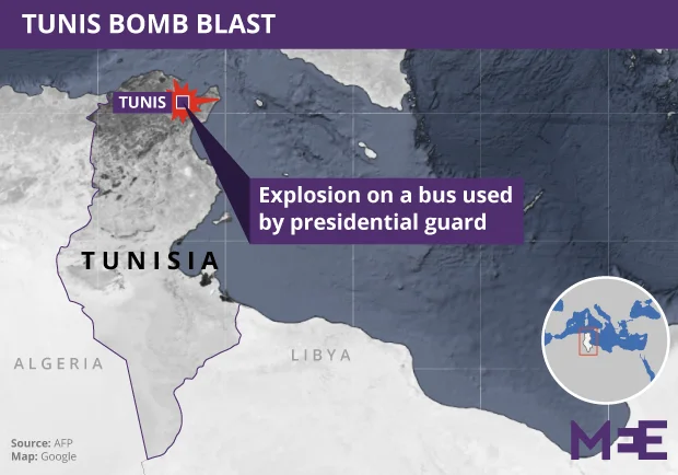 The attack occurred on the busy Mohammed V Avenue, a key thoroughfare in the capital, reportedly as the bus passed the headquarters of the RCD, the political party of former president Zine El Abidine Ben Ali, Tunisia Live reported.