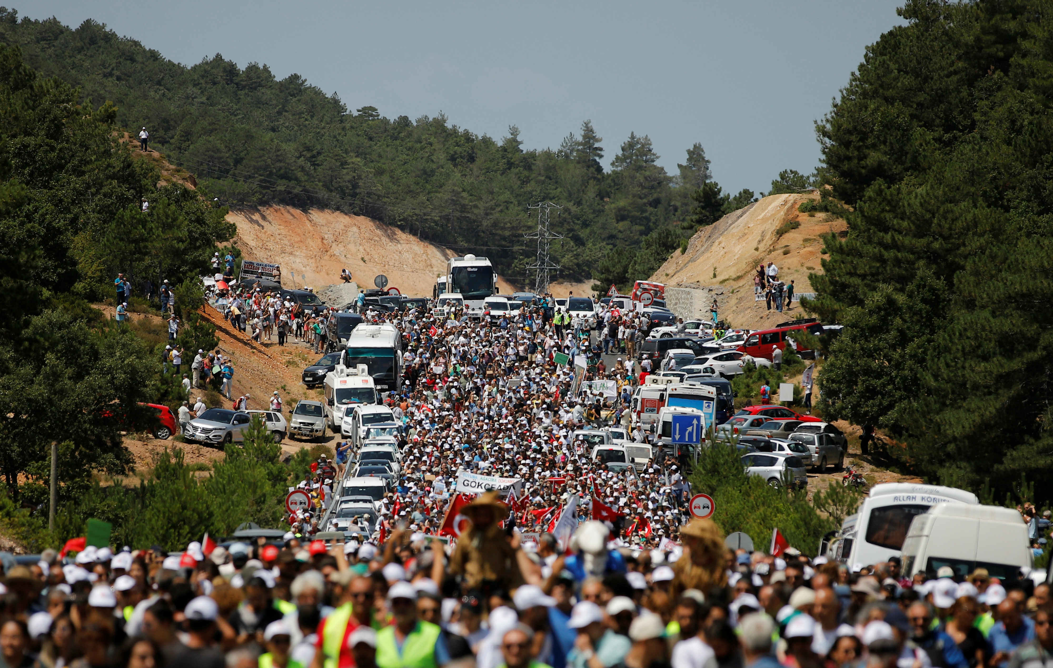 Around 5,000 protesters staged a peaceful and unusually large demonstration near the town of Kirazli on Monday against the environmental pollution they say the project will generate, Reuters news agency reported.