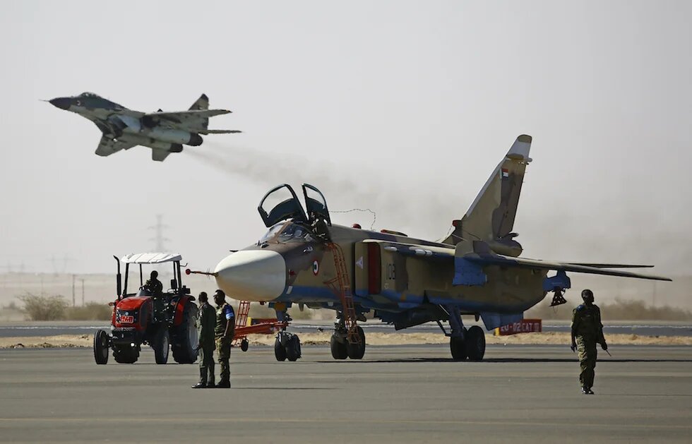 Members of the Sudanese air force prepare a plane during a joint Sudan and Saudi Arabia air force drill at Marwa air base, near Meroe, north of Khartoum, earlier this year (AFP)