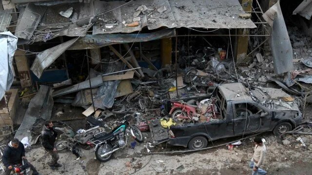 They said the blast ripped through a textile factory that members of Hay'at Tahrir al-Sham, an alliance of rebel groups whose backbone is the former Nusra Front, had been using as their quarters. At least 12 were killed, one rebel source said.