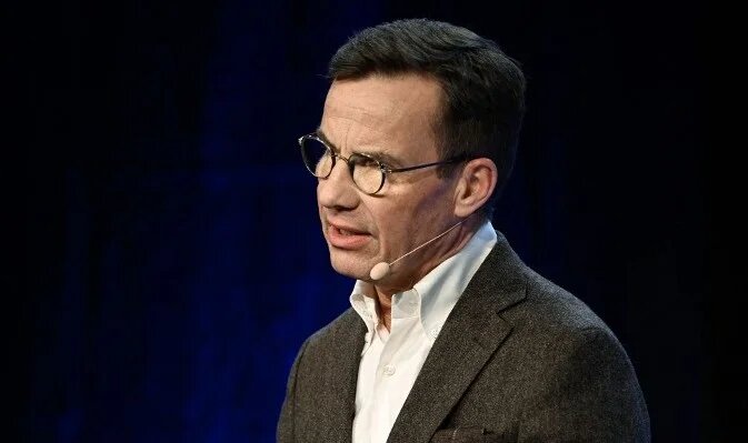 Sweden's Prime Minister Ulf Kristersson delivers a speech during the annual Society and Defence Conference in Salen, Sweden on 8 January 2023 (AFP)