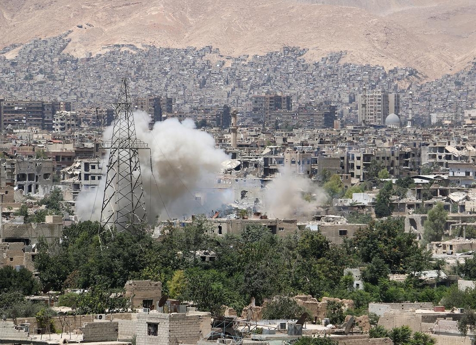 Smoke rises after a missile attack of a Syrian opposition group on forces loyal to Bashar al-Assad'S government in Damascus, Syria on 8 August 2015 (AA)