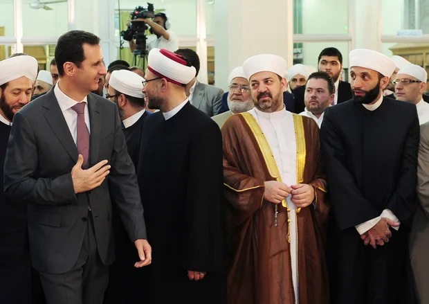 Photographs published by the news agency showed a smiling Assad surrounded by religious figures.