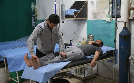 Abo Mohamad fled his home with his elderly parents because of a lack of medicine and because the government was bombarding the area.