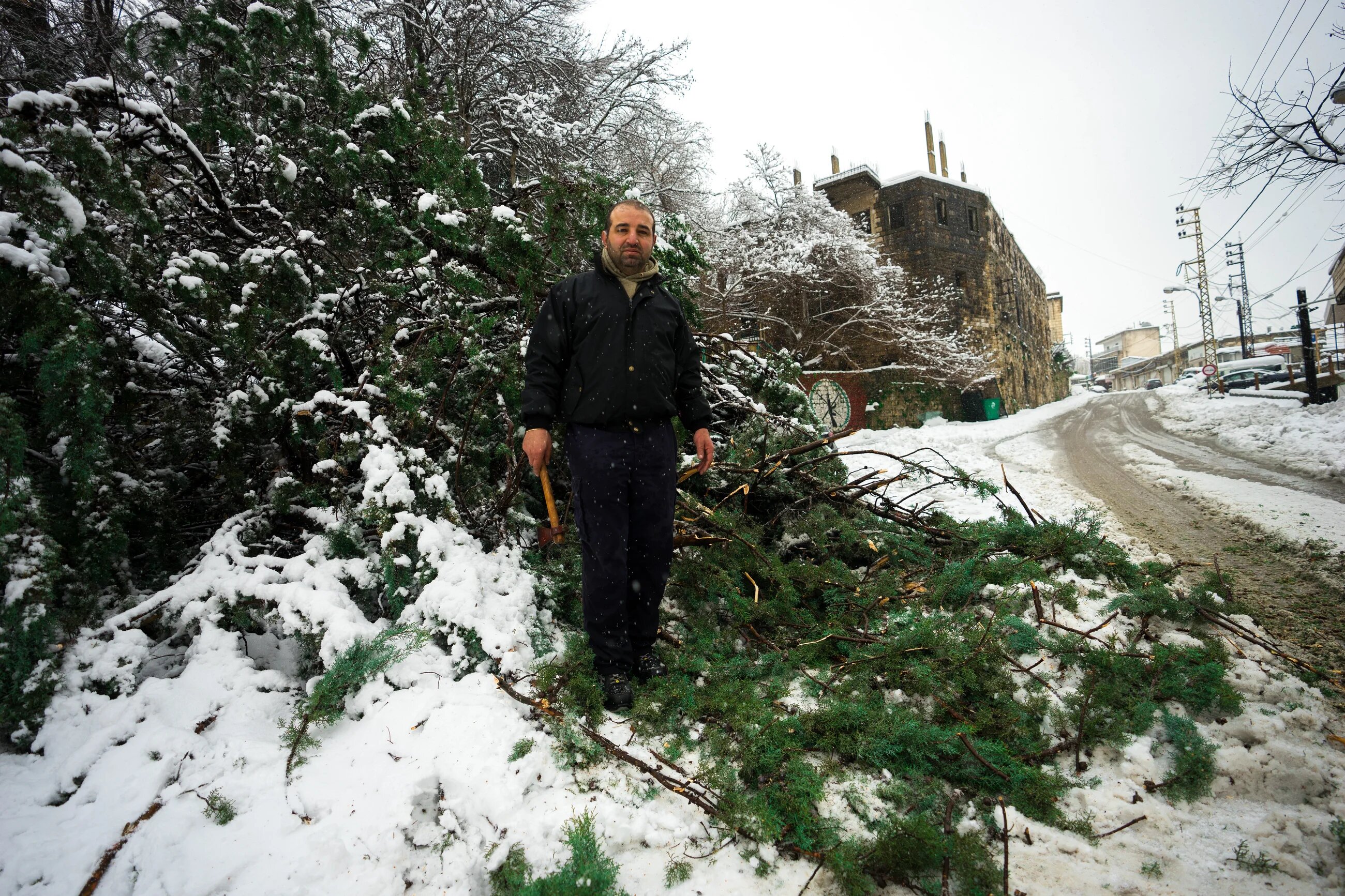 In Mount Lebanon, residents were forced to go out into the streets and shovel snow, as well as clear uprooted trees that had fallen and blocked roads overnight. Fawzi Tarabay, 42, from the Qraiyeh area, was shocked at the sight.