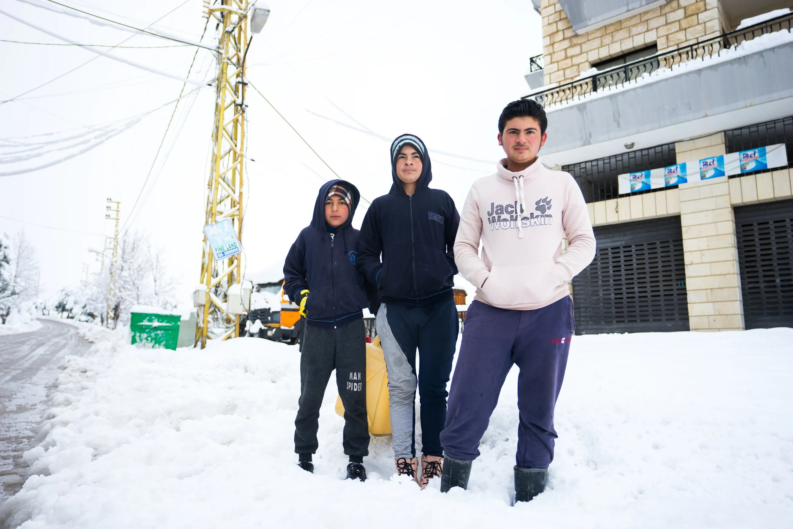 In many parts of the region, the heavy snowfall has caused power outages. Here, three brothers in the Lebanese village of Falougha walk up steep hills to fill up a gallon of oil to provide heat for their homes.