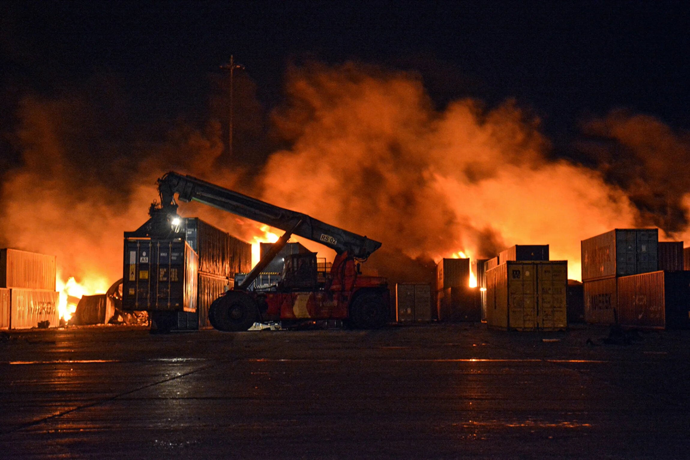 Syrian state media reported that the air raid caused “massive damage” and video posted on social media showed raging fires and secondary explosions erupting in what analysts said were likely blasts from munitions stored there.