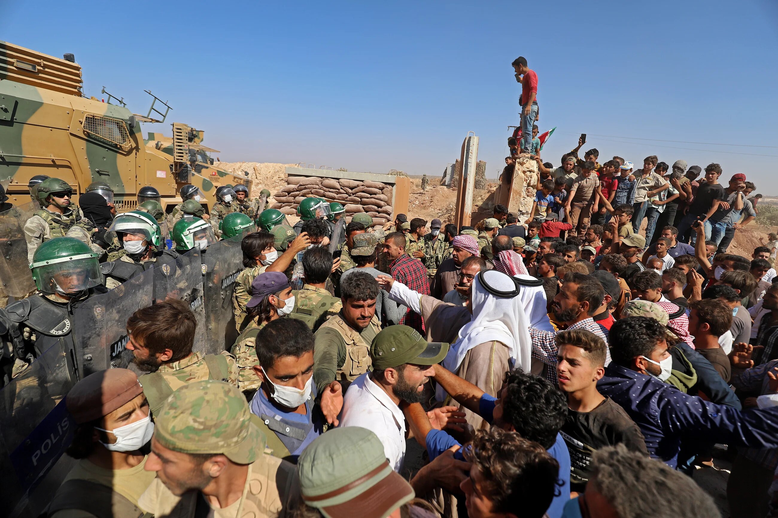 Turkish forces quickly intervened to disperse the crowd - soldiers fired tear gas canisters after a number of protesters tried to climb the walls of the garrison of the military base.