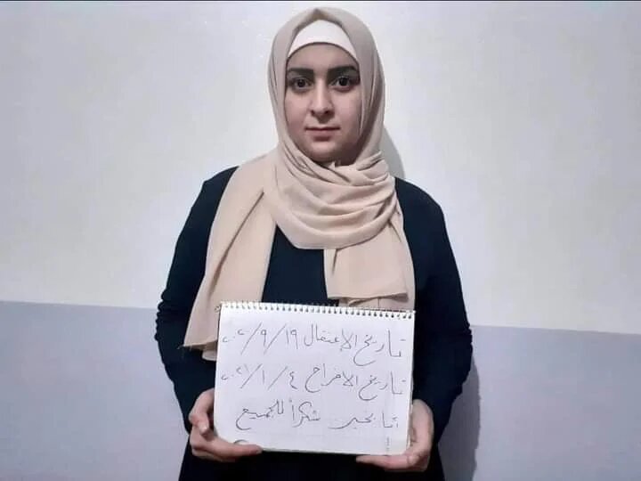 A source close to Shalo sent MEE a photograph of the newly released activist holding a sign saying: "Date of detainment 19/09/2020, date of release 4/1/2021. I am good, thank you everyone".