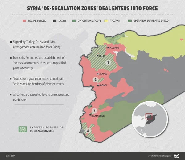 The guarantors will finalise maps of the de-escalation zones by 4 June, and the agreement can be extended automatically if the three guarantor states agree.