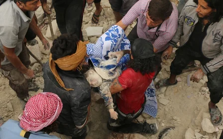 AFP reported a five-storey building was levelled with a family stuck inside in al-Shaar.