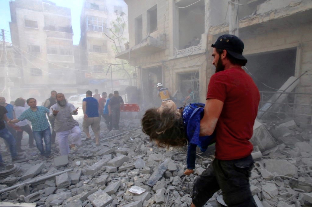 Nearby, rescue workers known as the White Helmets directed a bulldozer to clear the debris.