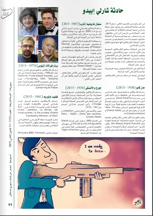 Though Amer Mohammed acknowledged the potentially offensive nature of some of the cartoons, he stated that his own longterm battle for press freedom in Syria meant that he, and other writers at the newspaper, felt compelled to throw their weight behind the 'Je Suis Charlie' campaign.