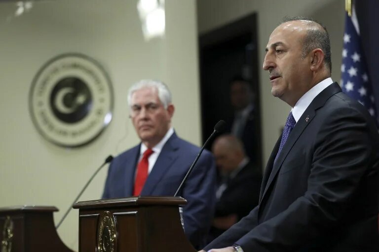 US Secretary of State Rex Tillerson looks on as Turkish Foreign Minister Mevut Cavusoglu speaks during a joint news conference in Ankara