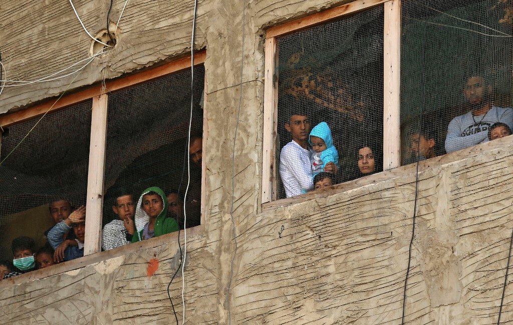 Syrian refugees look out from a building used as shelter in southern Lebanese city of Sidon in March (AFP/File photo)