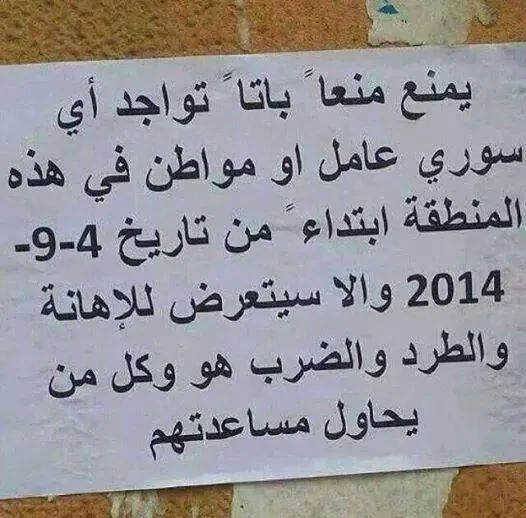 Despite the presence of campaigns that seek to remind people that Syrian refugees are primarily victims that should be helped not oppressed, with some activists highlighting how the Syrian people welcomed their Lebanese counterparts during Israel's 2006 military offensive, vigilante notes continue to spread.