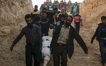 "May God take his revenge on the regime and Russia," said Abdullah Khalil, another resident, who said he lost members of his family in the air strike on Arbin and was searching for survivors among the rubble.