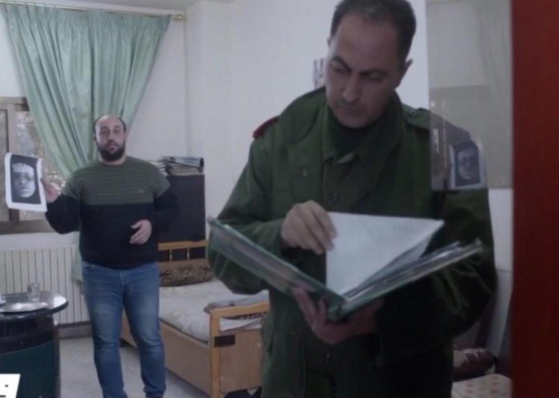 Translation: Art is a message and this is a message of death and a bloody regime. This Syrian drama is filled with murder and uses photos of detainees who have been imprisoned in the basements of security branches. They do not have the slightest sense of responsibility and it is as if it’s a message of defiance being sent out to the world. In this scene is the photo of the martyr Rehab Allawi from Deir Ezzor.